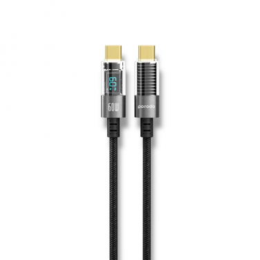 Cable Type-C to Type-C Porodo 60W Braided Display 1.2M(Black)