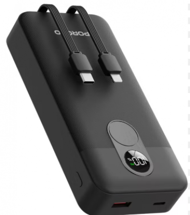 Porodo 20000mAh Power Bank 2xType-C, USB A and Type C and Digital Display with C & Lightning Integrated Cable